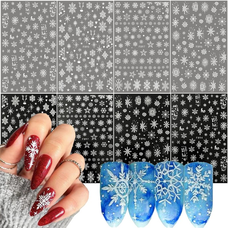 - Snow designs: You will get 8 sheets white glitter snowflake stickers for nails, Winter Christmas themed snow new year nail decoration, It provides you with a variety of options to give full play to your rich imagination of nail DIY.