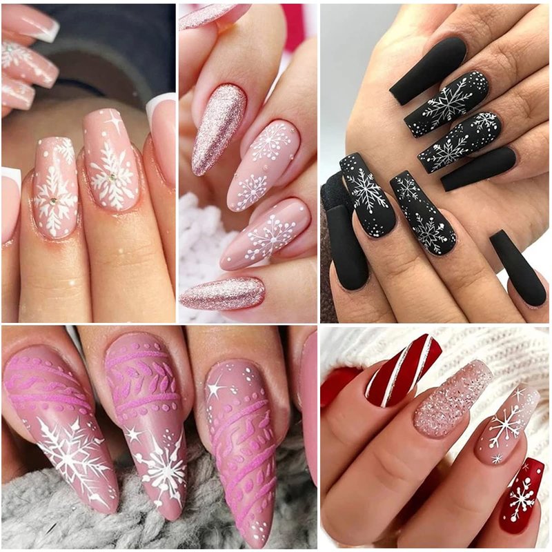 - Safety Material: christmas nail stickers for acrylic nails are made of safe and environmentally friendly materials,Perfect for home use and nail salon,designed with the theme of Christmas elements,snow flakes,elk, xmas DIY nail art decoration.