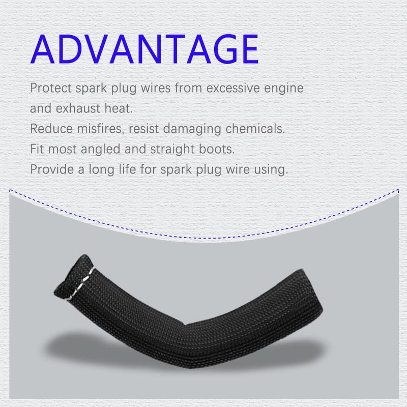 - [Easy installation]: Simply slide it onto your spark plug wire sleeve (sewn end over spark plug )The spark plug heat shield helps prevent problems such as burning, hardening and cracking.