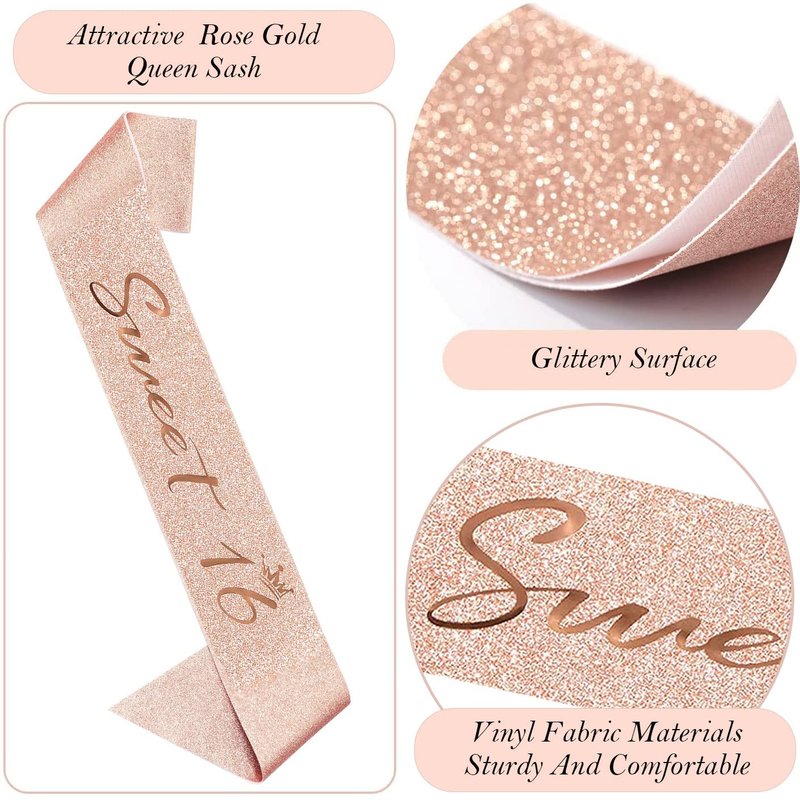 - Birthday Girl Sash: Our 16th birthday sash is made of high quality glitter fabric with foil “Sweet 16” lettering . The sash is in 63 inch length and comes with a gold charm pin that you can easily adjust the length you need.