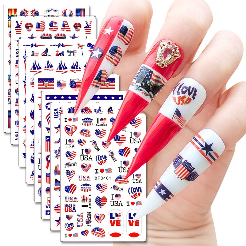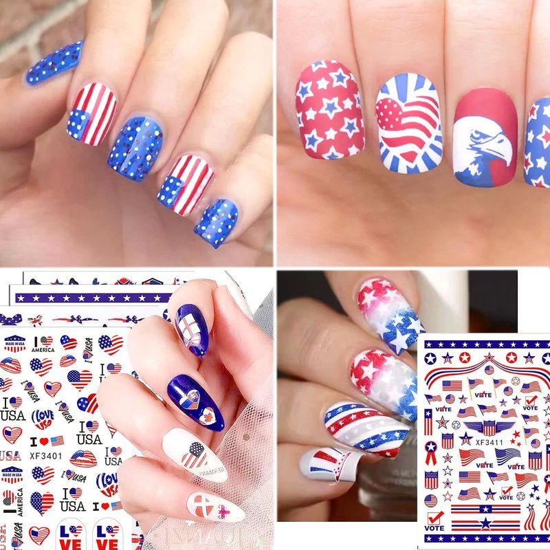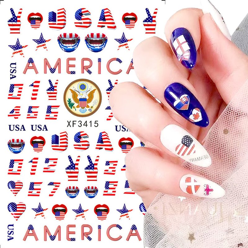 - 🔥Easy to use: Lots of different July 4 Nail Art Stickers designs for you to choose to fit natural or false nails, toenails, or nail tips. A self-adhesive design nail sticker is the most convenient way to decorate nails.