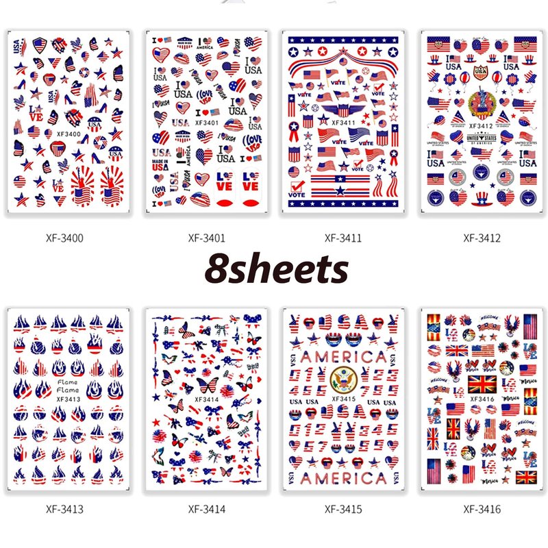 8 Sheets 4th of July 3D Nail Art Stickers Nail Sticker