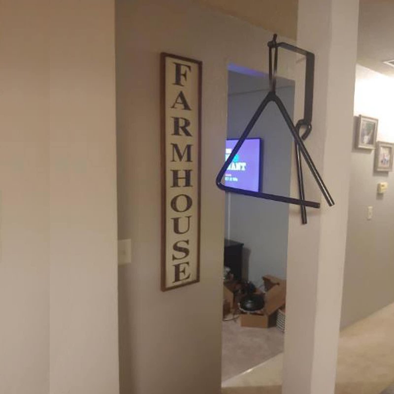 - 【Triangle Dinner Bell】Give your home some classic country charm. Hits this wall-mounted triangle bell in your kitchen or dining room. This smooth bell produces a loud, clear tone and beautiful reverberating ring. You will enjoy the charming country look home decor.