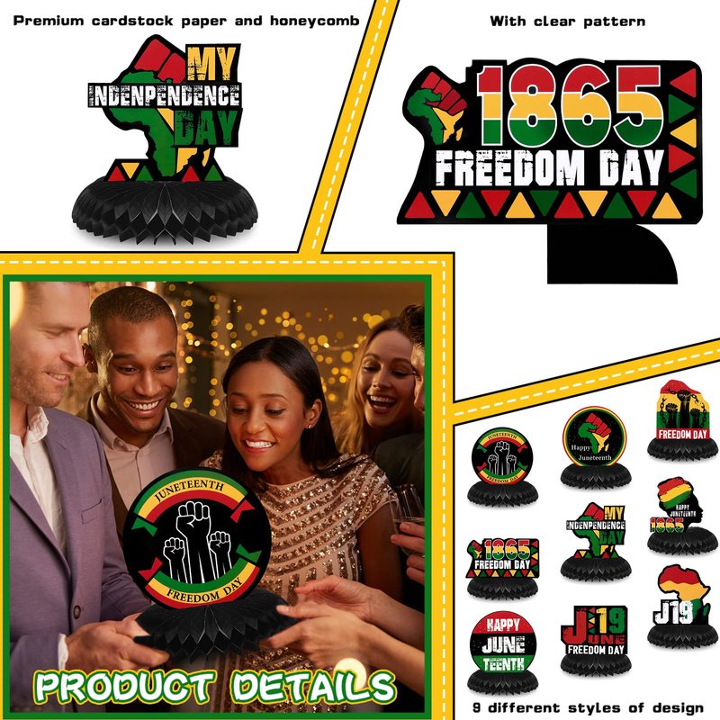 - You Will Receive: 9 pieces of happy Juneteenth centerpieces for tables, coming in 9 different patterns, sufficient and various to meet your decorative needs; You can also share them with your family members and friends
