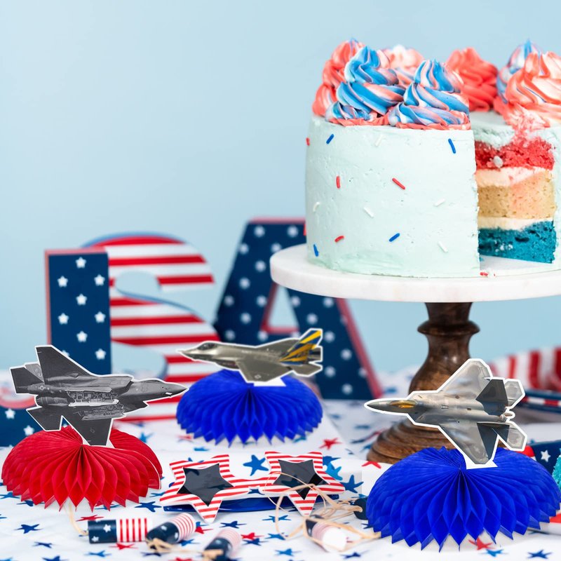 - Package includes: come with 9 pieces top air force gun honeycomb centerpieces in 9 different designs, each centerpiece is about 5.5 x 6.3 inch, proper size to decorate your party