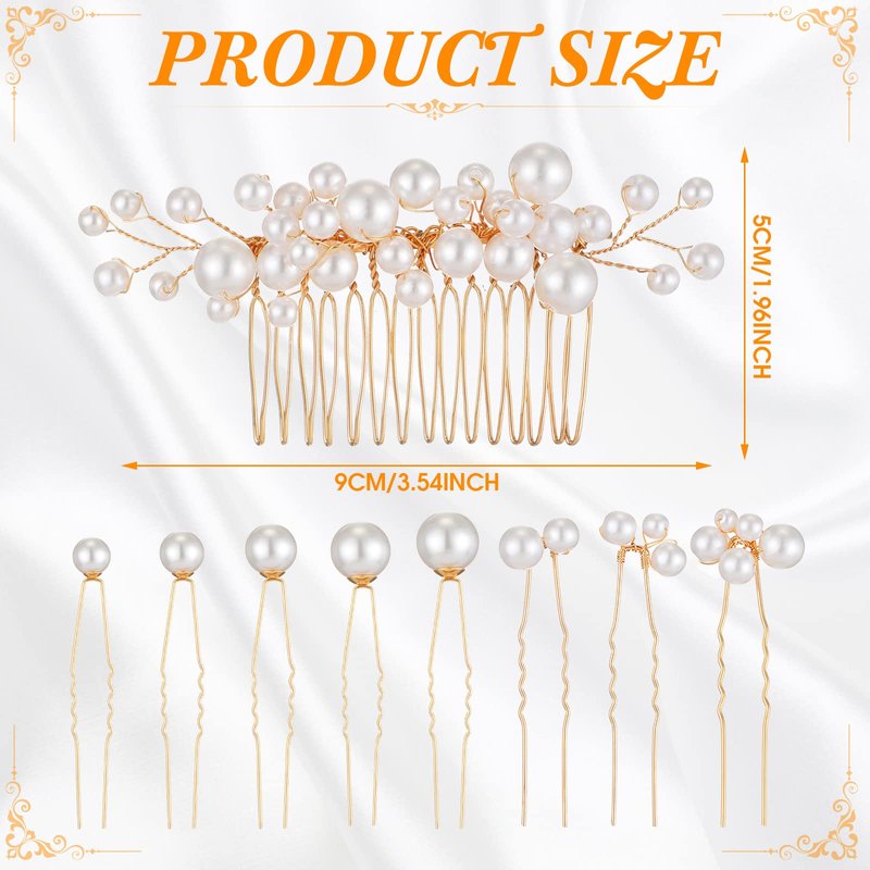 - Nice Combination Set: we will provide you with 1 piece pearl hair comb, 8 pieces pearl hair clips, 9 pieces are in total, various and elegant styles in combinations and matching, nice for wedding, brides, bridesmaids or for stage, make you more charming; Warm reminder: the size and tightness of the comb and hairpin are adjustable