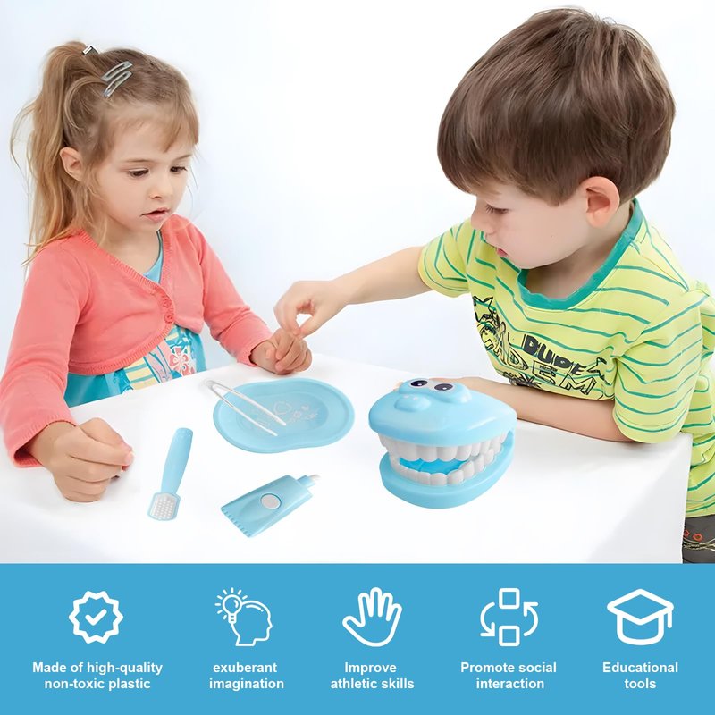 - SAFE AND LONG-LASTING: Crafted from high-quality, non-toxic plastic, this dental toy set ensures safe and extended playtime for children aged 3 and up. The sturdy construction withstands rough play, making it a reliable addition to your child’s toy collection.