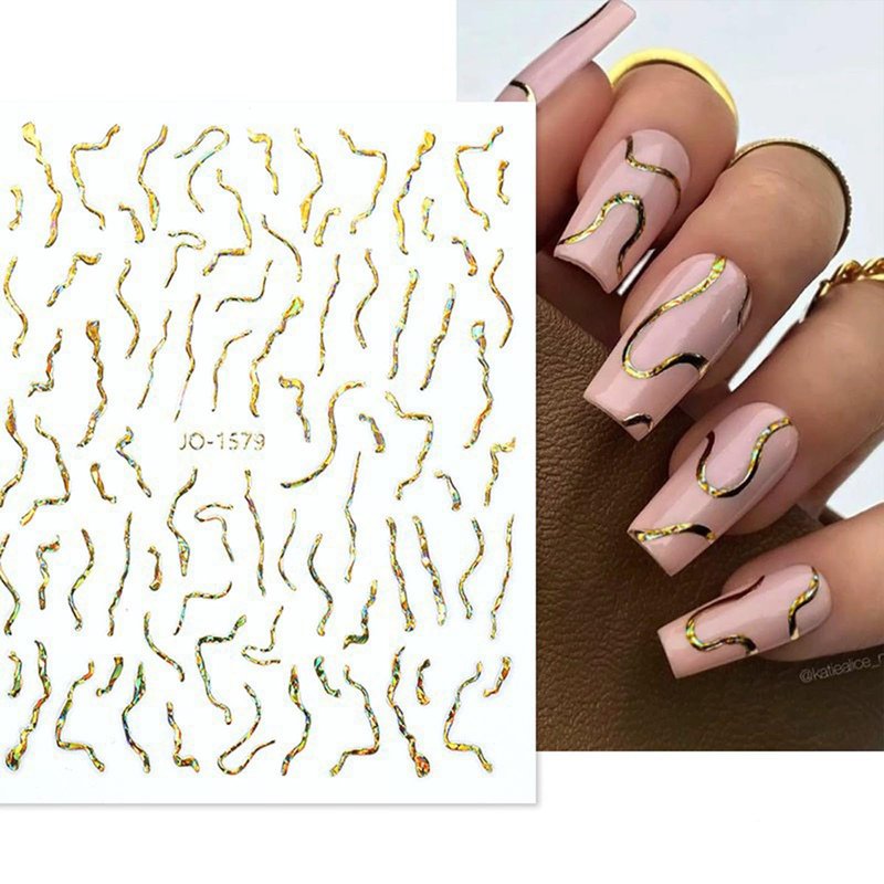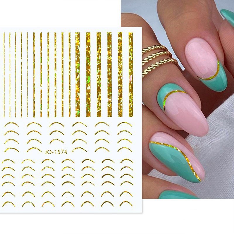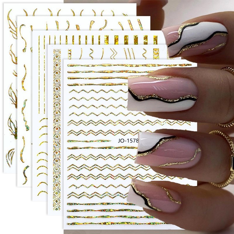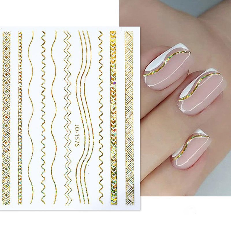 9 Sheet Gold Line Nail Art Stickers 3D Self-Adh...