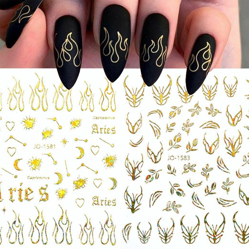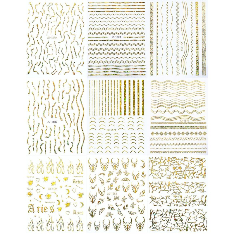 • 【Perfect Set】You will get 9 sheets gold nail art stickers fashion accessories in different designs. You can choose different patterns to decorate your nails, create a variety of dazzling 3D aurora nail designs.