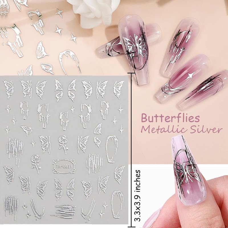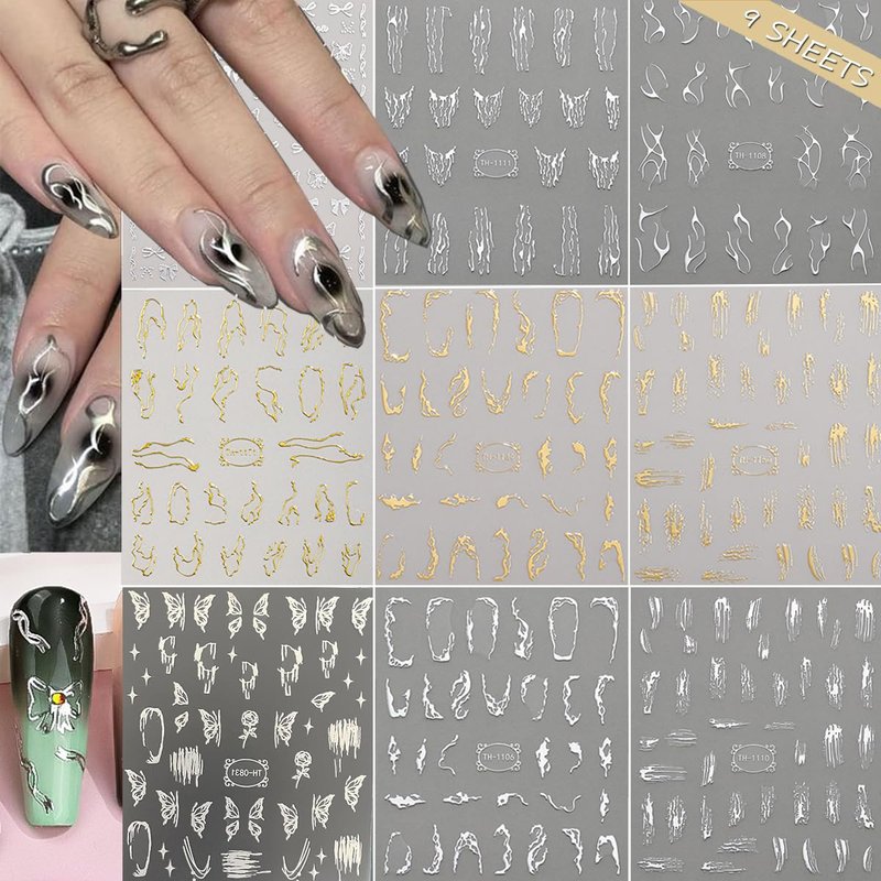 - 【Fashion Design】: 5D pure gold & silver color with unique patterns, graffiti abstract stripe lines waves, snakes, metallic butterflies, make your nails look more elegant and charming. Great for French manicure. Perfect for home nail DIY and professional nail salon.