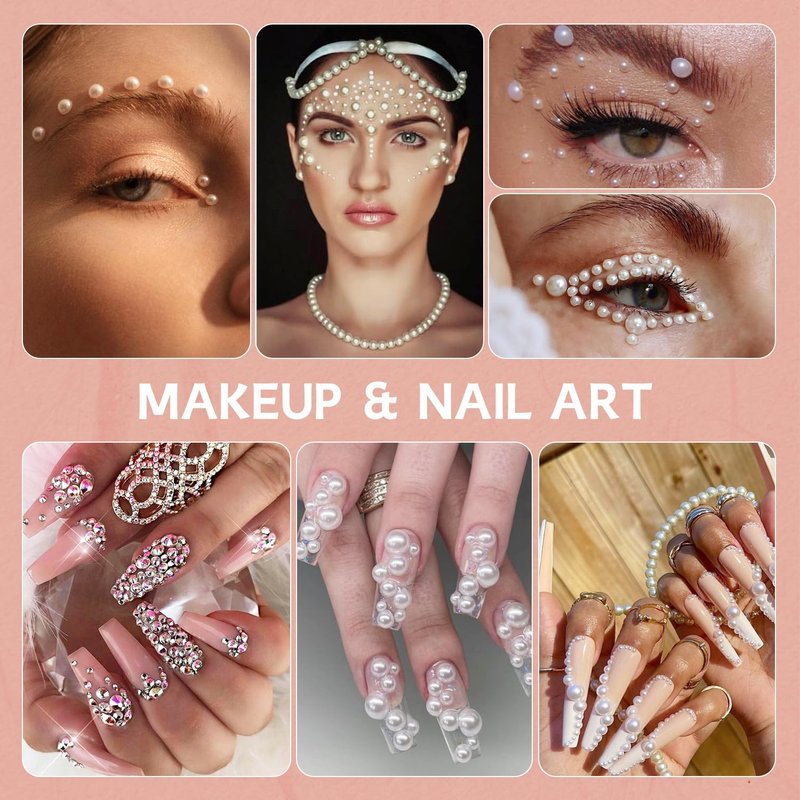 - ♛PREMIUM QUALITY: Our pearls and rhinestones are made of high-quality ABS and resin. Each flatback pearl bead looks shiny and elegant, and the rhinestones have a shiny and colorful AB surface. They are safe and durable, bringing a sparkling and elegant effect to your nails and decors.