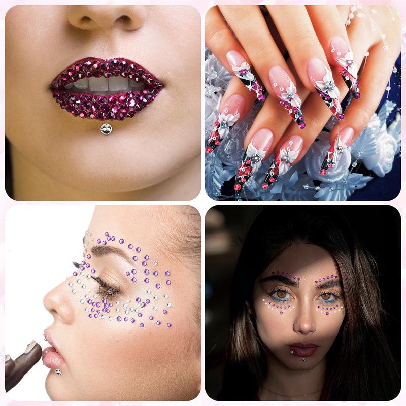 - Wide Applications: These self adhesive rhinestone stickers can be attached to the face, eyes, hair, body, nails, arts and crafts, decorating phone case, glasses etc. Great for Halloween party, Christmas, music festival, carnival, dance party, beach party, performance, etc.