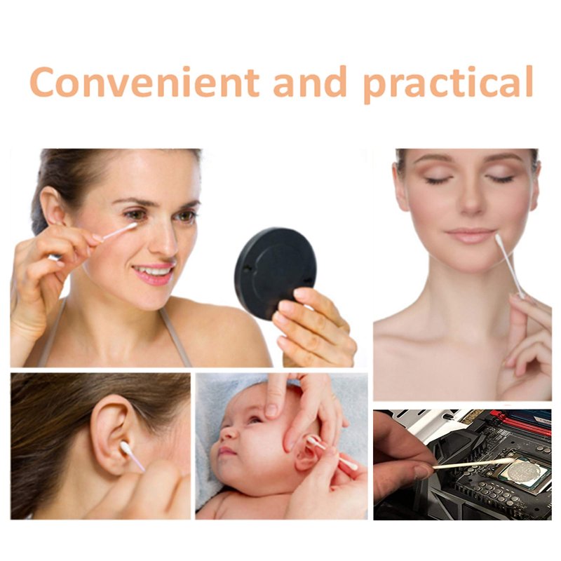 - These cotton buds are made of natural cotton. Precision processing, cotton head full and round, comfortable feel is not easy to fall off, on the skin and the surface of objects soft.
