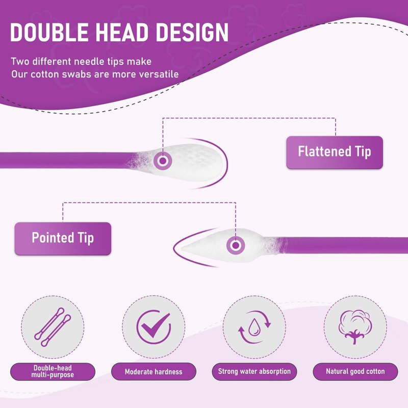 - 100% Cotton Cosmetic Applicators on Plastic Sticks. 900pcs packed in 3 bags.