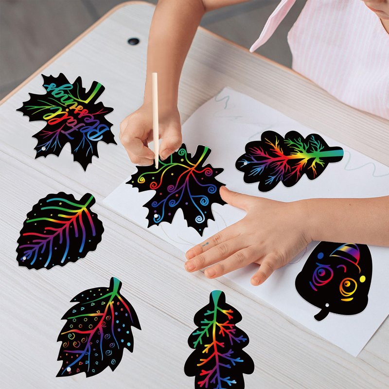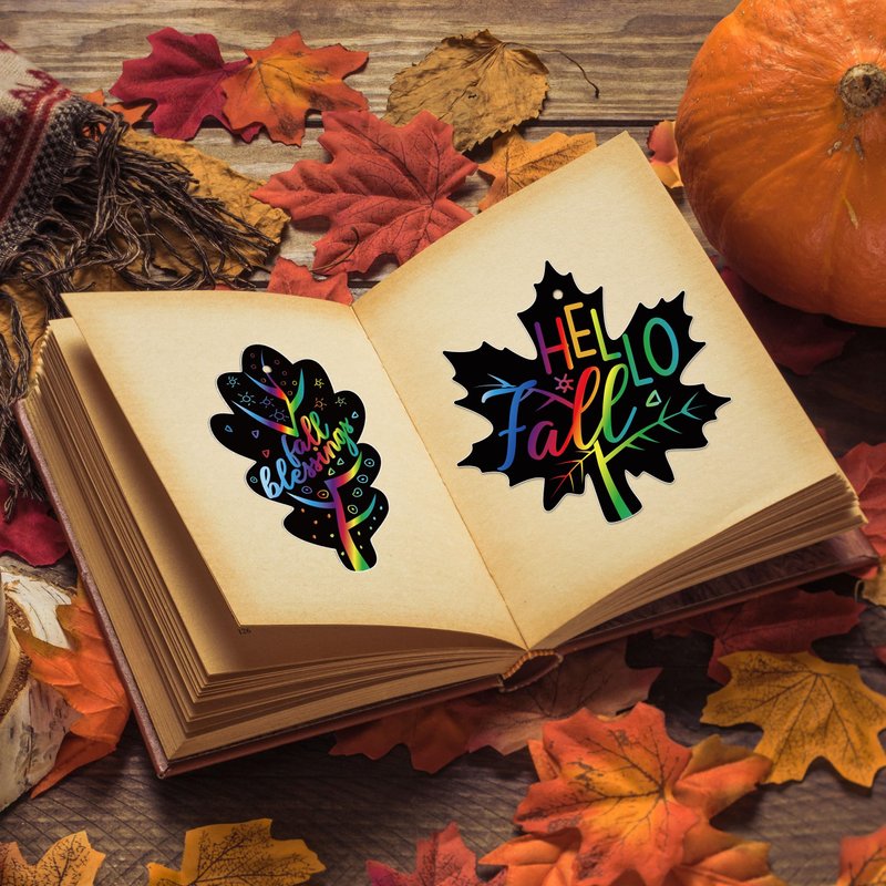- Creative and Fun Autumn Craft:Scratch off the black coating to reveal vibrant designs or write messages of gratitude on each leaf. Can be used as decorations for classrooms, homes, or even as bookmarks.These sets provide endless creative fun,suitable for fall,Thanksgiving and autumn-themed crafts