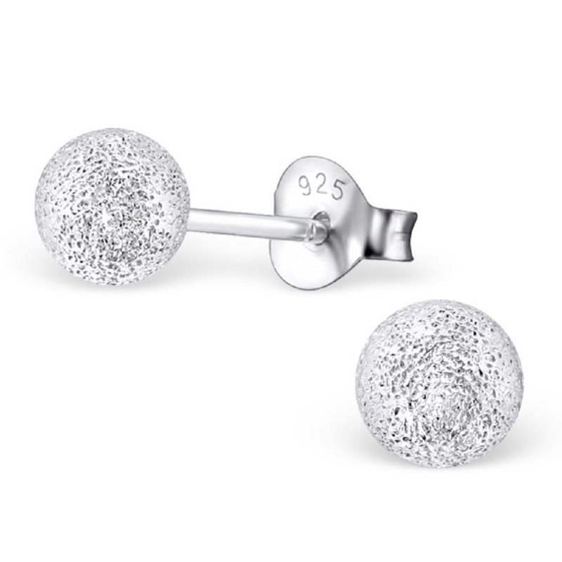 925 Sterling Silver 5mm Round Ball Diamond Dust Stud Earrings 1298