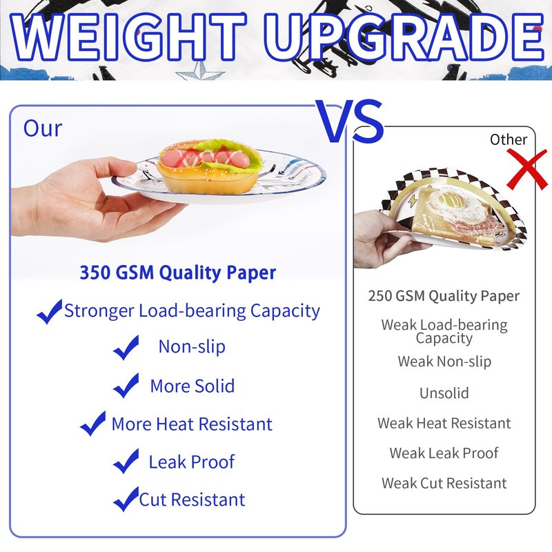 - Upgraded Material: Our military jet paper plates are upgraded to 350g weight, more solid and durable to resist cutting; fighter jet napkins are 2 ply, more thick and soft to absorb water; forks are not easy to break; patterns are beautifully printed and won't fade. Premium materials ensure your guests have a comfortable and pleasant dining experience (Tip: please do not microwave the plate)