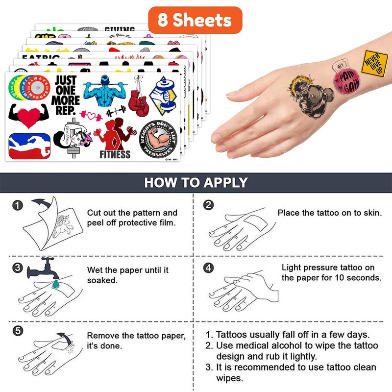 - Widely used: These cute Gym Temporary Tattoos pieces are suitable for many occasions such as birthday parties, birthday gifts, party decorations, gatherings and other special celebrations. It also can be applied on laptop, cup, luggage, phone case and so on which could make you look more impressive.