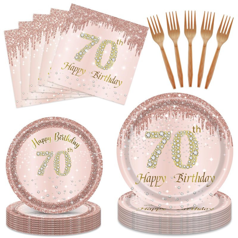 96PCS 70th Birthday Decorations for Women Rose Gold 70 Years Birthday Party Supplies Rose Gold Birthday Supplies Plates and Napkins Forks Disposable Tableware Set for Gifts Women1954 Themed Party