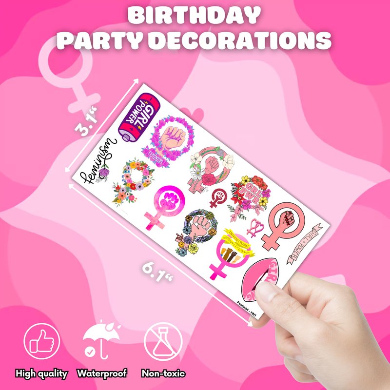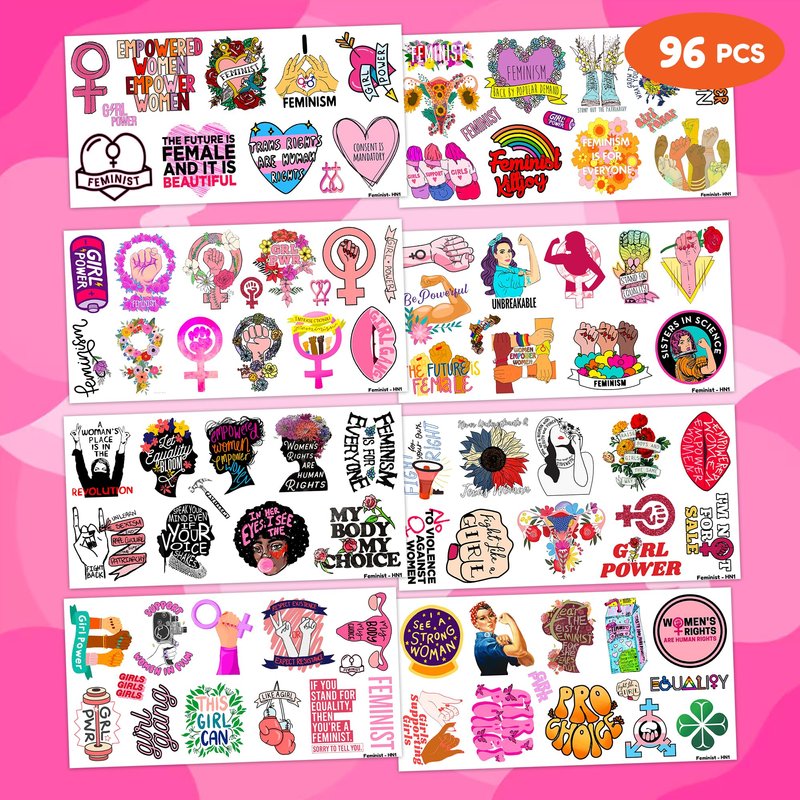 96PCS Funny Girly Feminist Temporary Tattoos Stickers Birthday Party Decorations Supplies Favors Decor Women Power Rights Gender Equality Tattoo Gifts For Adults Kids Girls Boys School Prizes Carnival