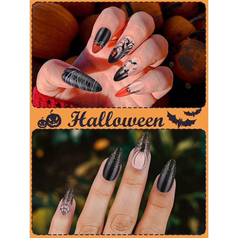 - These Halloween almond nails are widely applied for professional salon or individual use, suitable for both beginners and nail artists.