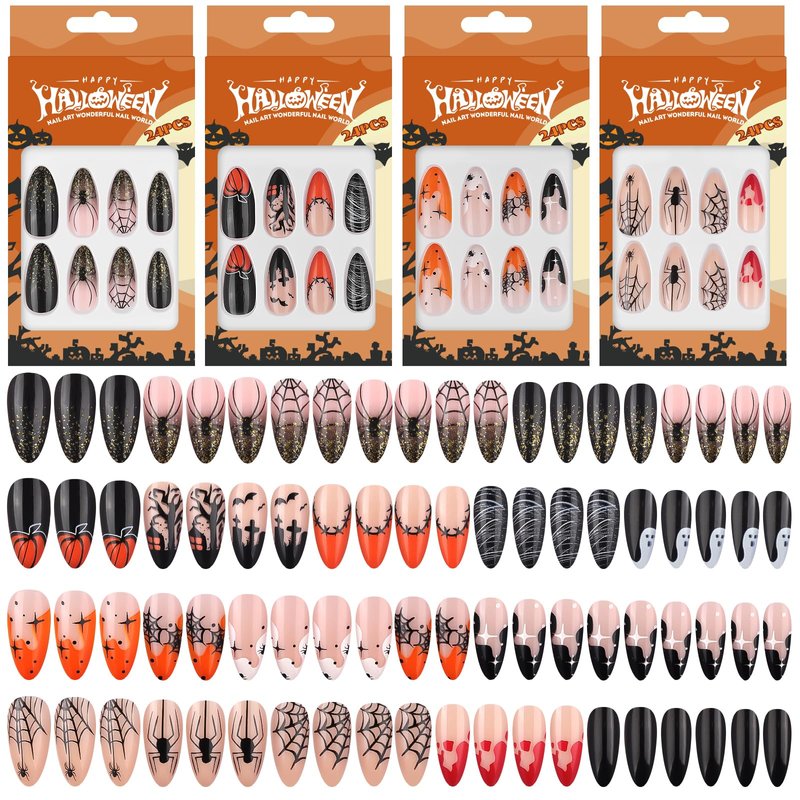 - 💀 Halloween Nails Kit: There are 4 packs Halloween style of long press on nail and adhesive tabs in the package, each pack has 24 pieces Halloween nails in different sizes and patterns, enough quantity for you to change different styles of nails to match your Halloween outfit.