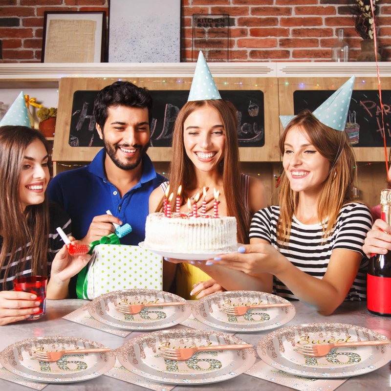 - High-Quality Material:We chose stronger plates and softer napkins than others.Sixteenth birthday party plates and napkins are made of from high quality paper and are safe for both children and adults.Using rose gold 16th birthday party decorations will make your party more enjoyable.