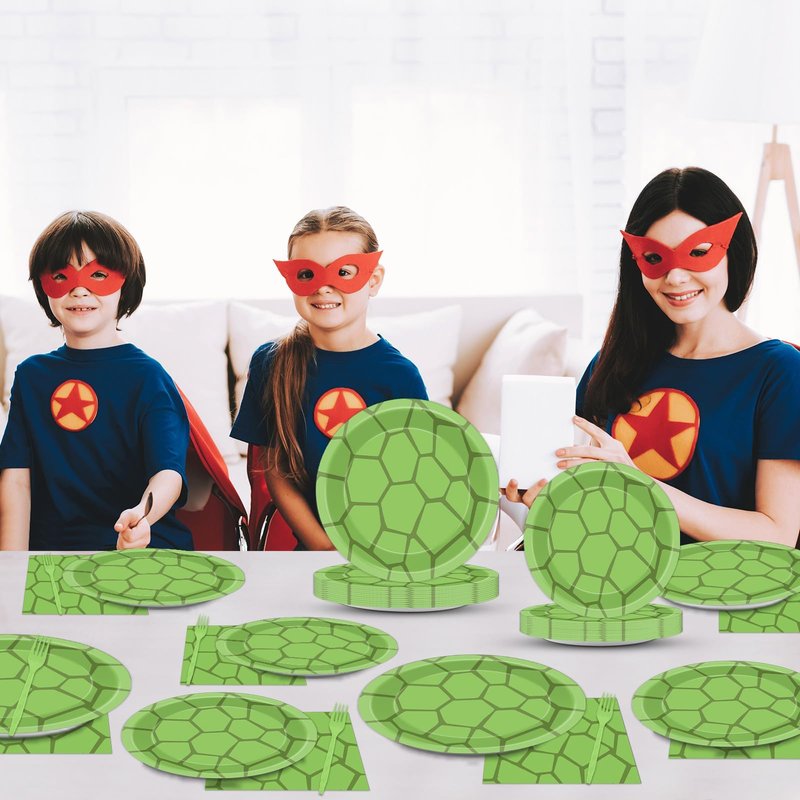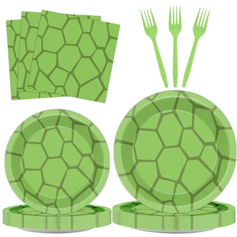 - Package Include: You will get 24 pcs 9in turtle party paper plates, 24 pcs 7in green dessert plates, 24 pcs 6.5 in turtle green party napkins and 24 pcs green forks, enough quantity to serve 24 guests.