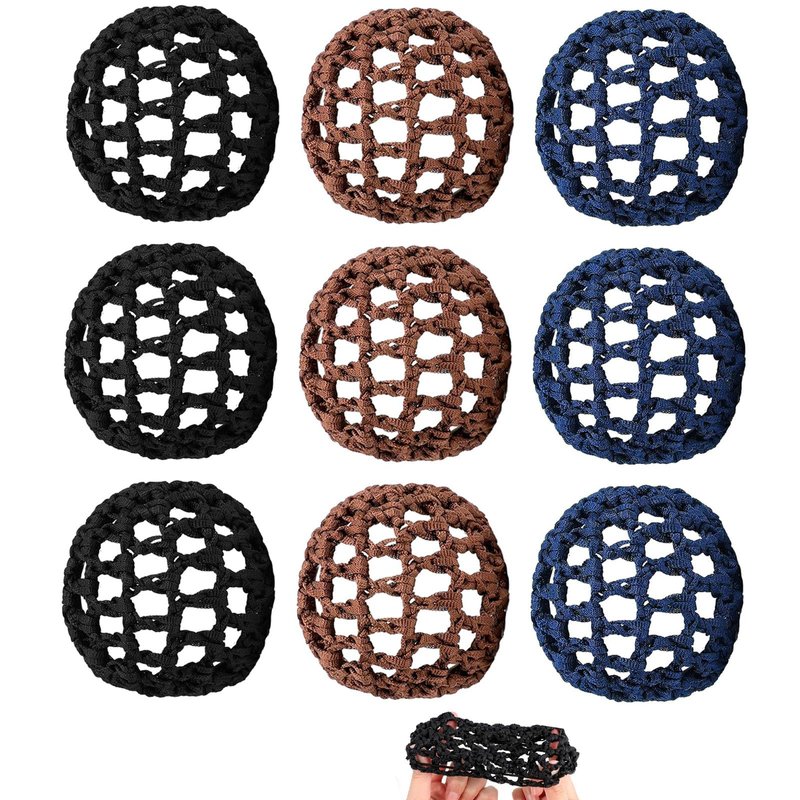 9Pcs Hair Nets Invisible for Buns, 3 Colour Styles, Dance Hair Bun Ballet Net Stretchy Elastic Bun Hair Net, Hair Bun Holder Hair Accessories for Dancer Skater Bank Clerk, Women Ballet