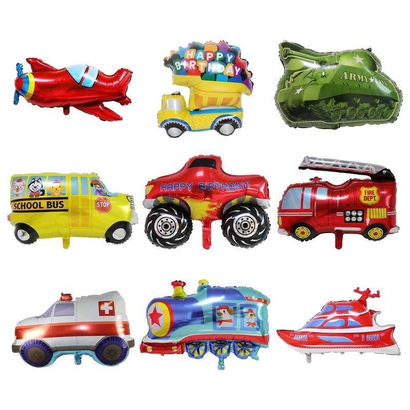 - 【Car transport balloons】 You will receive 9 different styles of transportation balloons, including school buses, birthday trucks, fire trucks, trains, ambulances, police cars, engineering vehicles, styling ships, and vintage airplanes. It is the best choice for children's birthday parties.