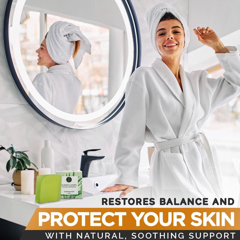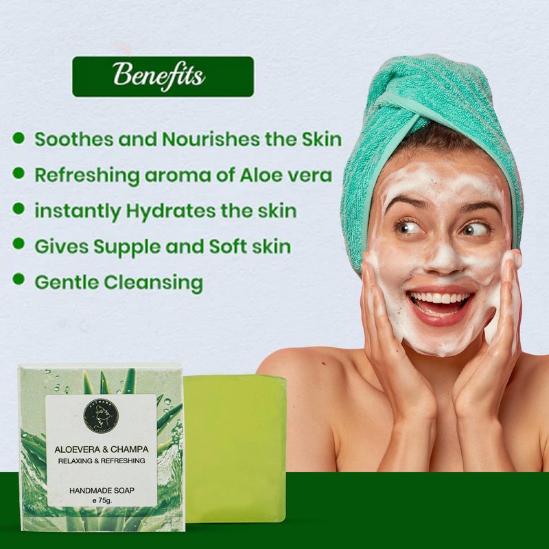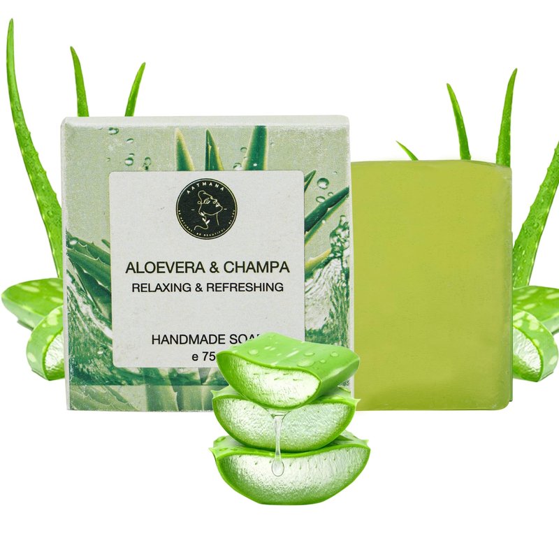 AATMANA Aloe-Vera & Champa Handmade Natural Bar Soap for Men & Women, Moisturizing Body & Face Soap, 7.9 Oz Soap Bars (3 Soap Set)