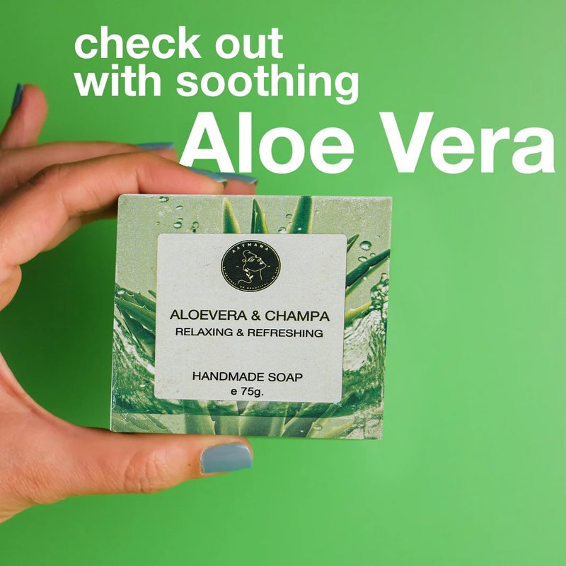 - TRADITIONAL AYURVEDIC HERBAL SOAP :: AATMANA is a traditional Ayurvedic soap carefully processed and enriched with natural, soothing herb of ALOE-VERA & CHAMPA. It is hand-made in small batches, ensuring the highest quality and purity.