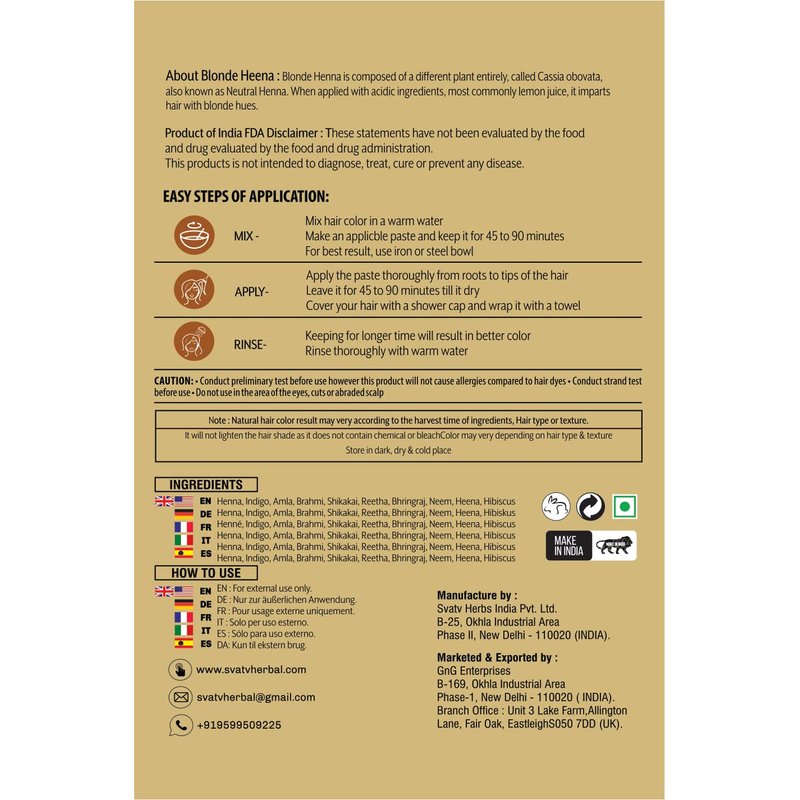 - Part Number: AATMANA HERBAL HENNA BLONDE 100G