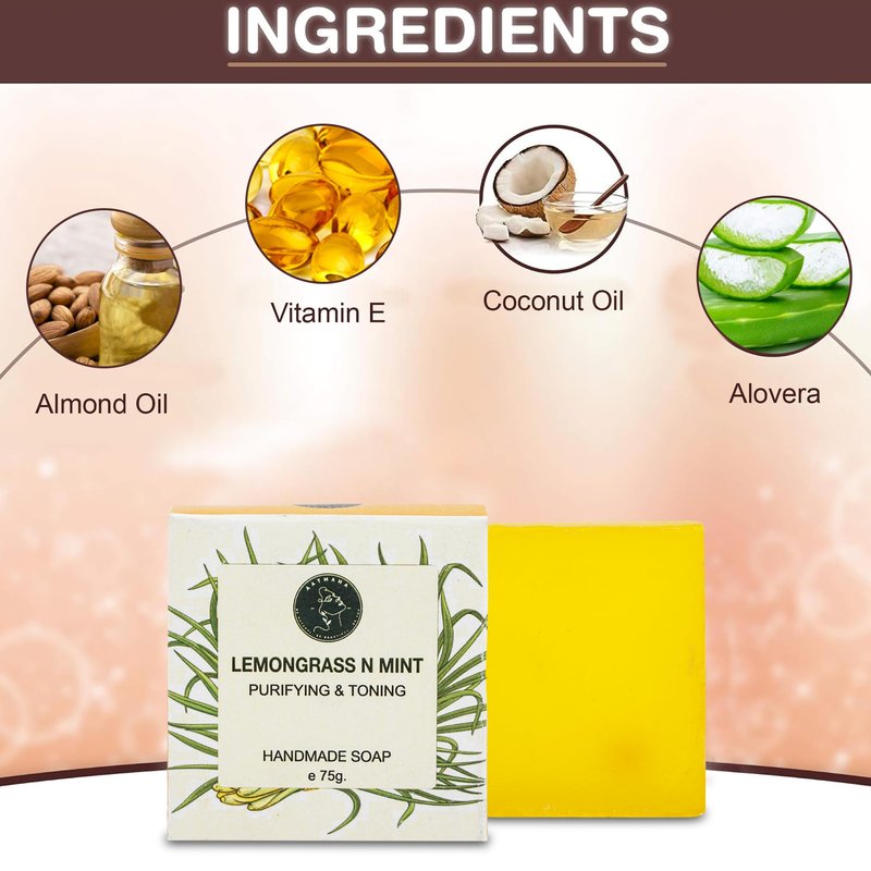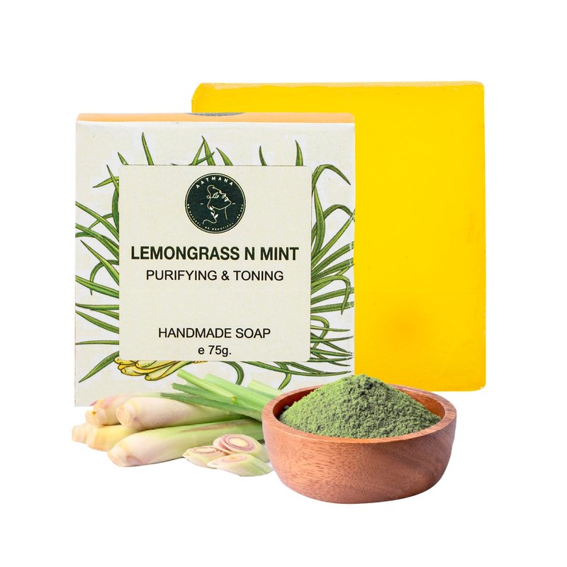 - TRADITIONAL AYURVEDIC HERBAL SOAP :: AATMANA is a traditional Ayurvedic soap carefully processed and enriched with natural, soothing herb of LEMONGRASS & MINT. It is hand-made in small batches, ensuring the highest quality and purity.