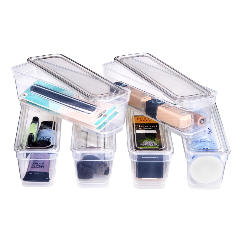 - Clear Design: These bins are made with clear plastic for quick and easy identification of contents inside. No more digging through drawers to find your small household items!