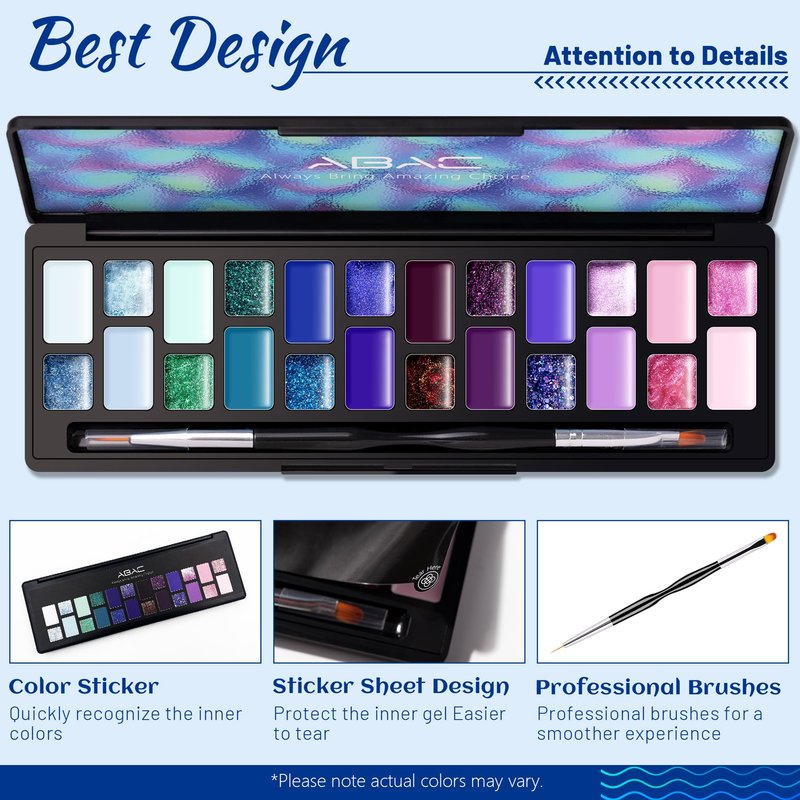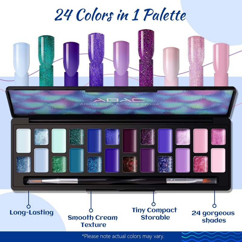 - 🌼【Pearl Gel Nail Polish Set】ABAC pearl solid gel polish with 24 well-selected daily routine colors. Can be worn alone, or as color base and practically work with kinds of Manicure Styles. With 1* nail brush, Upgraded the gel form of the regular liquid to solid, the weight of heavy to light, bottles & jars to 1 palette - 24 colors in 1