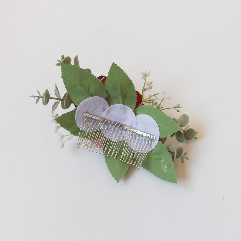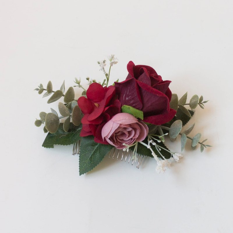 Abbie Home Flower Hair Comb - Floral Boho Comb with Rose Berry Handmade Bridal Crown Wedding Floral Headpiece (Burgundy)