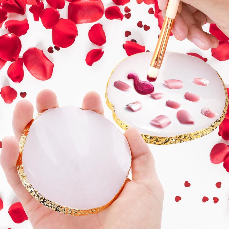 Abeillo Resin Nail Art Palette, Nail Polish Palette Nail Painting Mixed Color Palette Gilded Edge Nail Art Color Mixing Tray DIY Nail Gel Makeup Display Board Pallet for Nail Art