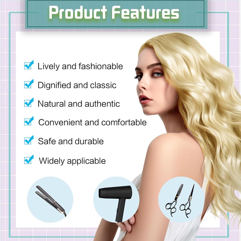 - 【Comfortable】Long blonde wig length is 26 inches, Lace front wigs suit for any face shape, and the rose mesh hat have good breathability. Soft, comfortable, and breathable. Long wigs there are 2 clips inside the hair to prevent it from falling off. The elastic adjustable strap can be adjusted according to the size of the head, fixing the hair in a suitable position and making it easy to install. (Head size: 20.5 inches -22.5 inches. The wig cap is provided free of charge in the packaging).