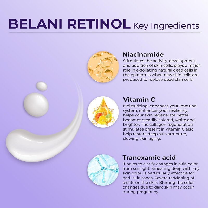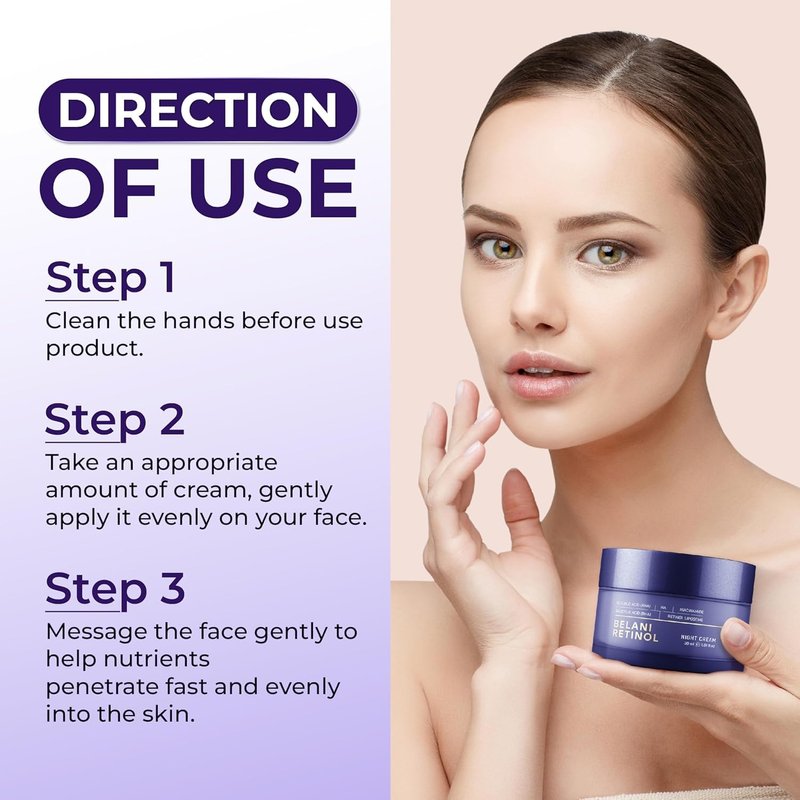 ABERA BELANI Retinol Night Cream For Women, Dark Spot Remover, Melasma Treatment, Reduce Fine Lines, Anti-Wrinkle, Anti-Aging Neck and Décolleté For Face (1 Box + Gift Eyelash Serum)