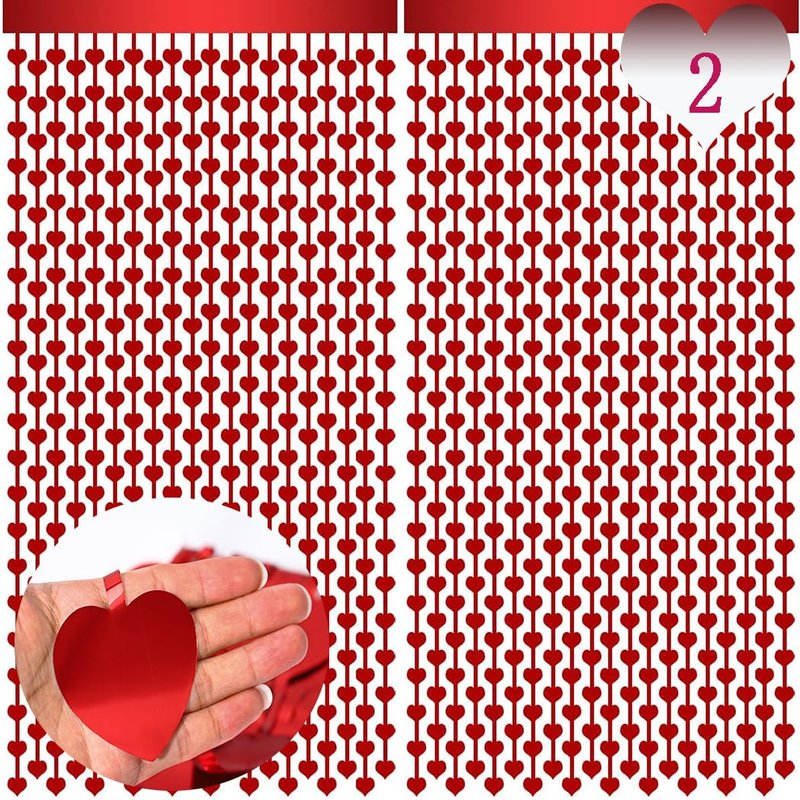 Abien Heart Tinsel Curtains Red Heart Foil Fringe Curtains Red Love Streamers Red Heart Streamer for Valentines Party Decorations Backdrop for Engagement Wedding Theme Birthday Props 2PCS