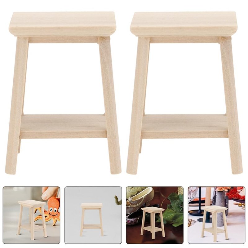 ABOOFAN 2pcs Miniature Wooden Stool Mini Wooden Dollhouse Stool 1:12 Scale Miniature Tall Stool Tiny Chair Model Dollhouse Furniture Accessories for Doll House Kitchen Pub Bar