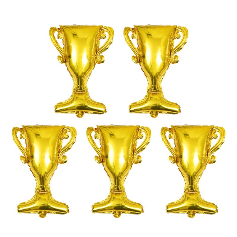 ABOOFAN 5Pcs Gold Foil Balloons Trophy Mylar Balloons for Basketball Football Soccer Anniversary Birthday Party Decor Supplies