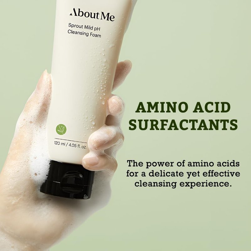 Discover the perfect balance of gentle cleansing and nourishing care with the ABOUT ME Sprout Mild pH Cleansing Foam. This daily facial cleanser is formulated with a mild pH level similar to your skin's natural pH, ensuring a non-irritating and comfortable cleansing experience. Enriched with 35% young Barley & Wheatgrass Extract, known for its moisturizing and nutrient-rich properties, this cleansing foam helps maintain your skin's optimal hydration levels.