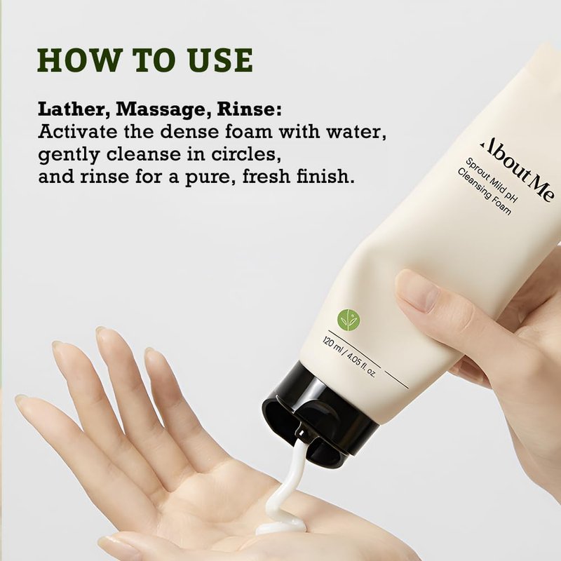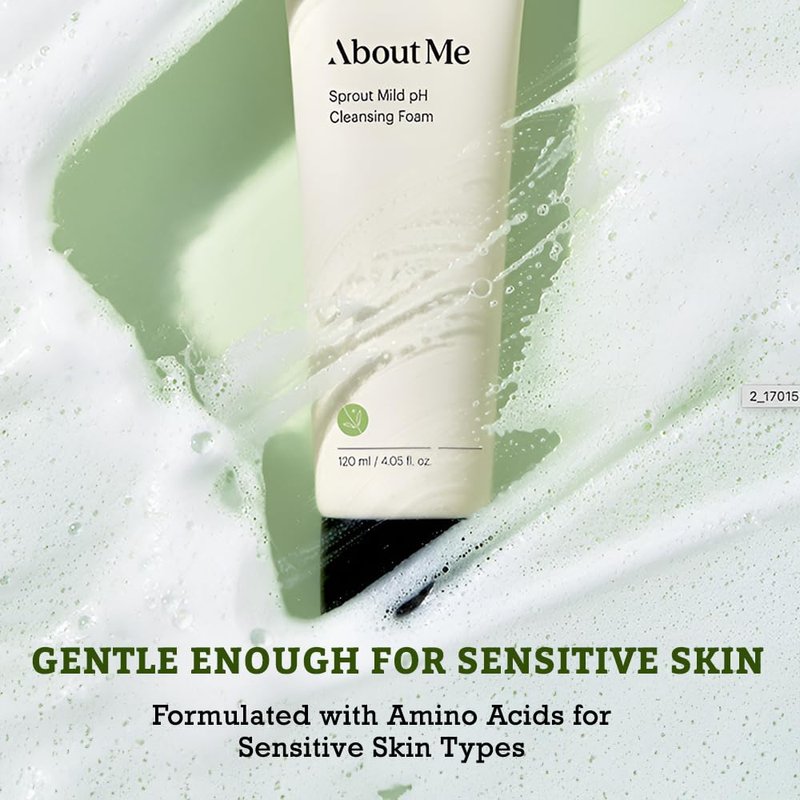 ABOUT ME Sprout Mild pH Cleansing Foam - Gentle Daily Face Wash with Young Barley & Wheatgrass Extract, Vegan (120ml/4.05 fl oz)