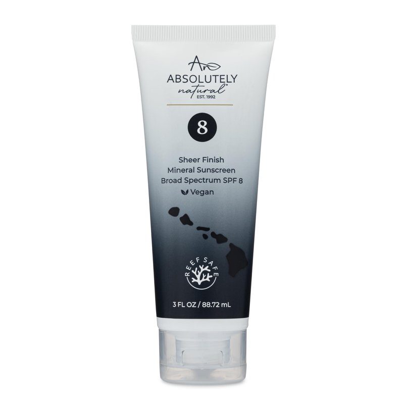 Discover the unique benefits of Absolutely Natural's SPF 8 Mineral Sunscreen, designed to provide moderate protection against the sun. This new formulation boasts a lightweight, sheer texture, carefully formulated with non-nano zinc oxide for reliable defense against sun damage. At Absolutely Natural, our dedication extends to the preservation of marine life, as our sunscreen is crafted to be reef-friendly. Emphasizing ethical choices, our sunscreen is entirely vegan, offering a compassionate option for skin care. Revel in the gentle touch of the sun while nurturing your skin with Absolutely Natural's SPF 8 Mineral Sunscreen. It's not just kind to your skin; it's eco-conscious, aligning with your values for environmental responsibility.