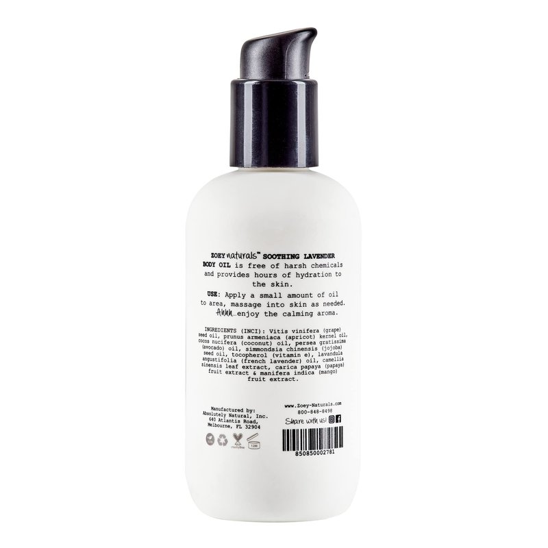 Absolutely Natural Zoey Naturals - Soothing Lavender Body Oil for Kids and Babies, Calming, Moisturizing, Hydrating, Made in USA