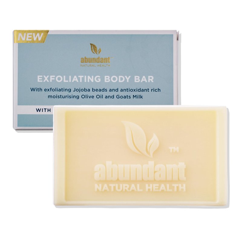 Abundant Natural Health's Exfoliating Body Bar is crafted with natural ingredients and enriched with 99% pure magnesium, goat's milk, and olive oil to hydrate your skin. This ultra-hydrating organic formulation is enhanced with biodegradable jojoba beads to gently exfoliate, leaving your skin feeling relaxed and nourished. Our 90g Body Bar soothes and moisturizes, making it suitable for all ages and skin types, including sensitive skin. To use, massage the body bar into damp skin to create a rich and creamy lather, then rinse thoroughly. This product is scientifically formulated and ethically sourced, reflecting our commitment to sustainable practices. Magnesium is a crucial mineral for essential body functions. Our ocean-sourced magnesium is 99% pure and cultivated off the Australian coast, ensuring the highest quality. Abundant Natural Health is founded on reliable science and a passion for improving the health and well-being of our customers. We believe in clean and sustainable processes that are better for you and better for the planet. Experience the nourishing and exfoliating benefits of our Exfoliating Body Bar, and enjoy healthier, more radiant skin.