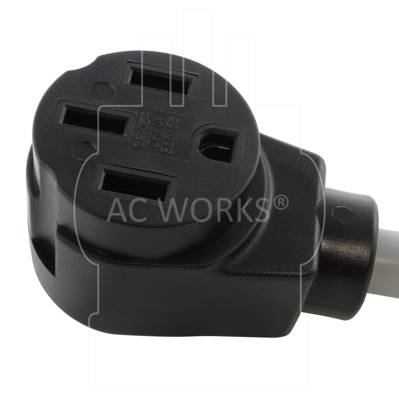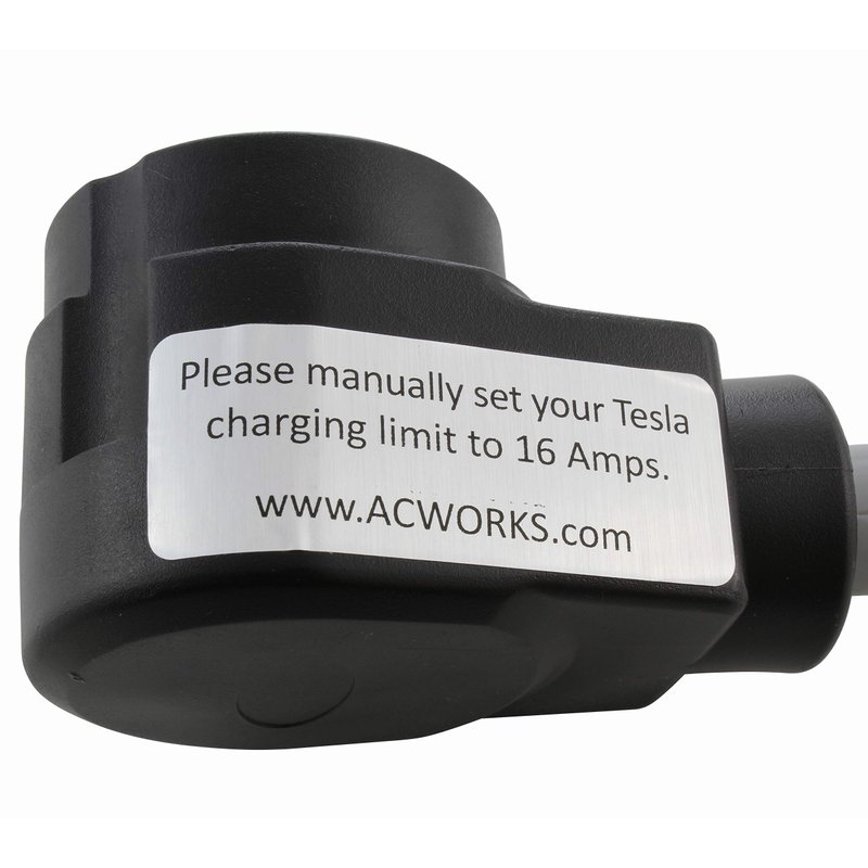 This AC WORKS [EVL1520MS-018] is a heavy-duty 1.5-foot adapter. The adapter is a NEMA L15-20P to NEMA 14-50R (Tesla). The NEMA L15-20P is a 3-phase, 20 Amp, 250 Volt, 4-prong locking EV charging plug. The NEMA 14-50R is a 50 Amp, 125/250 Volt female connector. The cable is an STW 10/4, heavy-duty 600 Volt jacket. This product comes with a limited 5-year warranty. *Please Manually Set your Tesla Charging Limit to 24 Amps. EV Charging Adapter Electric Vehicle Adapter for Tesla NEMA L15-20P, 3-Phase 20 Amp, 250 Volt Locking 4-Prong Male Plug NEMA 14-50R, 50 Amp, 250 Volt Tesla Style Connection Gen1 and Gen2 Tesla Mobile Connector Compatible