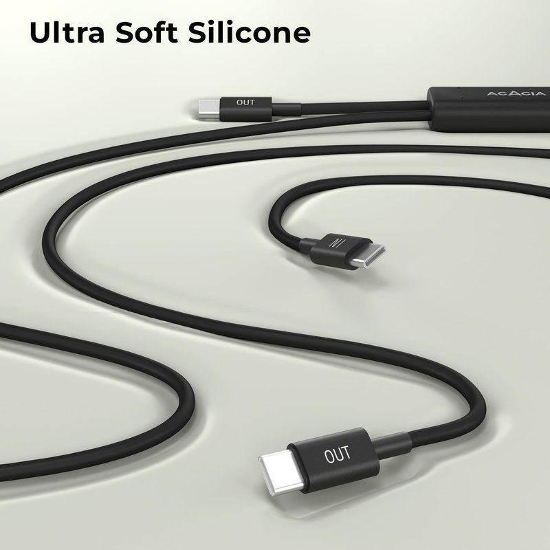 ACACIA USB C to USB C Cable, 2 in 1 USB C Cable Made of Ultra Soft Silicone, Lightning Cable 6.5ft, 60W C to C Type Fast Charging Cable, Tent Accessories 1 Pack